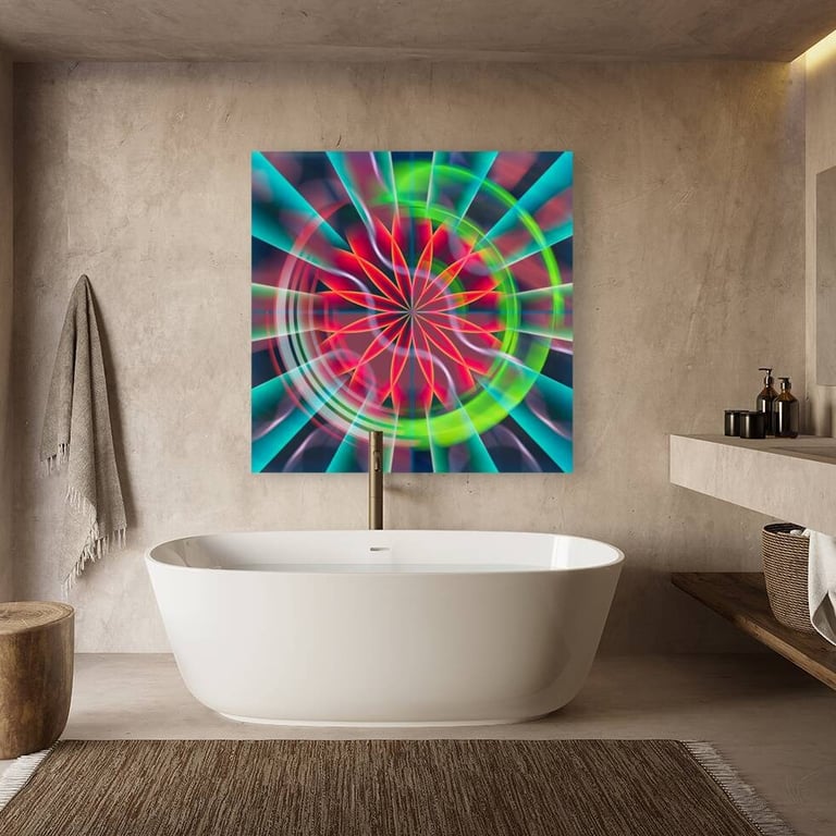 Images are printed directly onto a sheet of 1/16" thick aluminum. The aluminum sheet is offset from the wall by a 3/4" thick wooden frame which is attached to the back. Acrylic images are printed onto the back of a 1/4" thick sheet of clear acrylic. Both substrates produce stunning results.