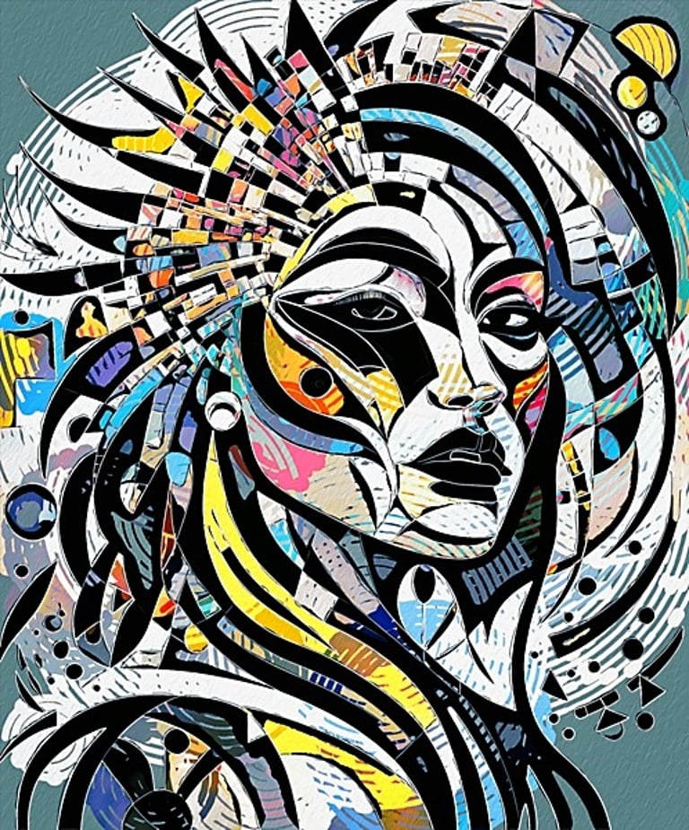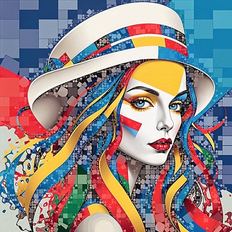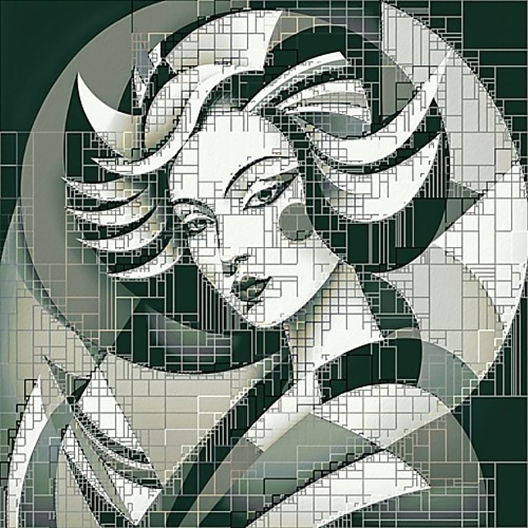 A selection of digital artworks including portraits, mosaics and animals.