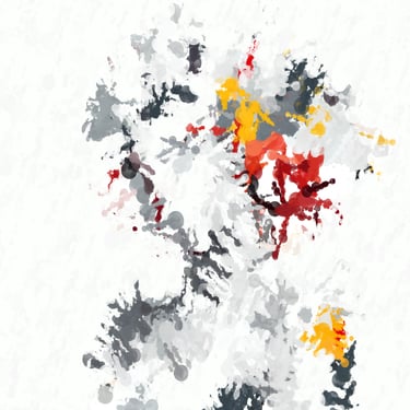 For the fourth stage, a Studio Artist diffusion preset was used to add brush style outlines to the image, creating white separation between the image's various area's, for example, between the edges of the crow quill pen output and the underlying circles and squares added in the third stage. Some adjustments were also made to opacity and blending modes to show this as a white brushed line, rather than a coloured outline. Click on the thumbnail image to see a larger version.